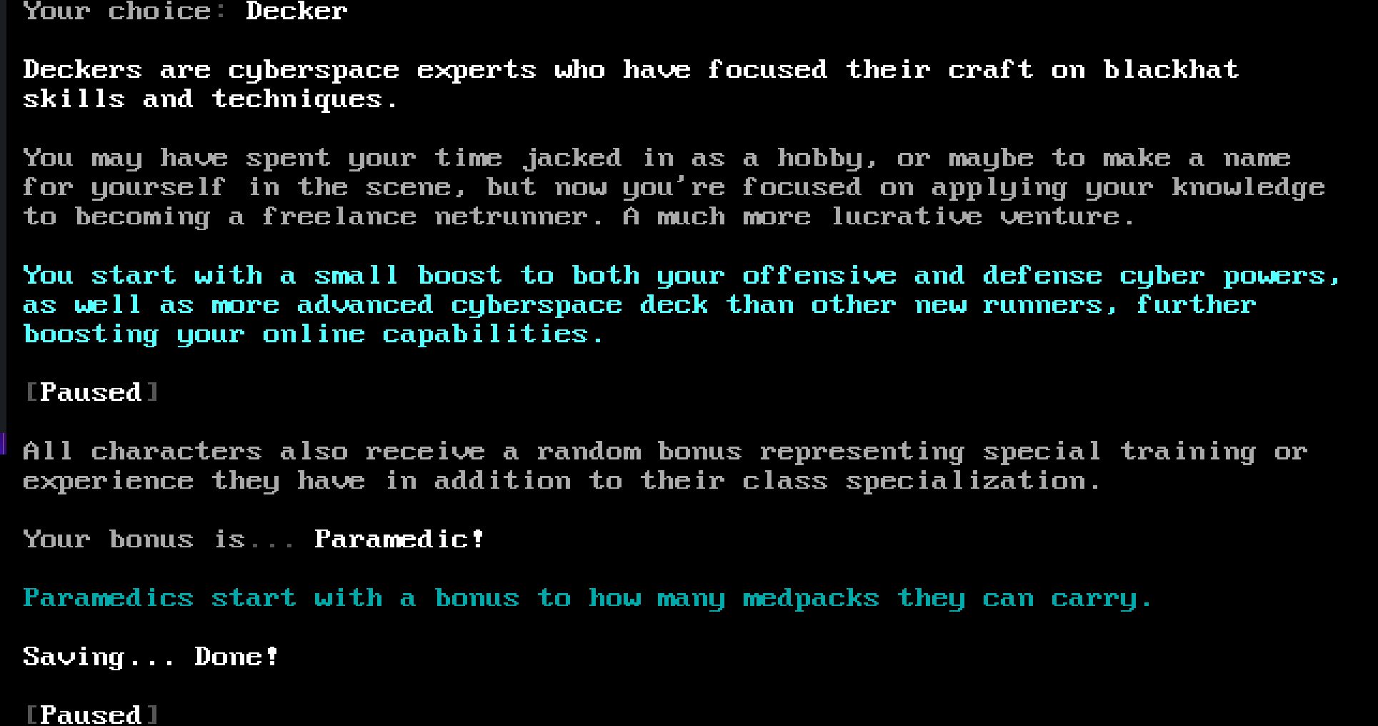 What you see when you create your first character: