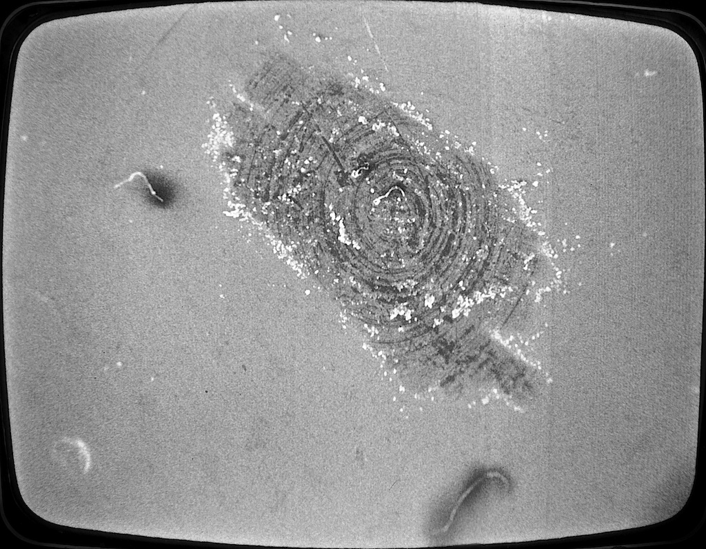Image of mechanical pencil graphite at approximately 20x magnification. The specimen is about 1 mm across. Higher magnification images of this specimen are not available. Imaged by Chris Murphy and Mike Kan.