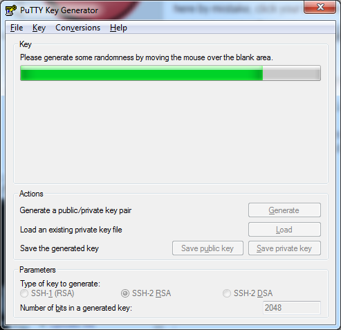 Generating the key requires random data to be generated, to do this drag your mouse around the screen.