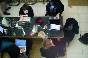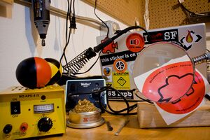 | Create With Us! Our 5,600 square-foot space contains an electronics lab, machine shop, sewing/crafting supplies, two classrooms, conference area, library, darkroom, and kitchen. Everyone is welcome to use our many resources. Find others to create with. Find help with your projects. Help others with their projects. Learn, teach, share. Come to Noisebridge and create! Noisebridge's hours are 24 hours a day, 7 days a week. New visitors are welcome any time, but it's best to visit in the evenings or during an event to make sure we have a volunteer to show you around and make introductions. |